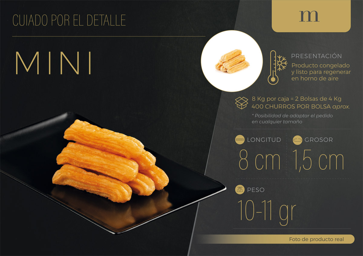 El gancho: El sabor de siempre con la regularidad que su negocio necesita. Crujiente, ligero y con el corazón tierno que define al auténtico churro madrileño.